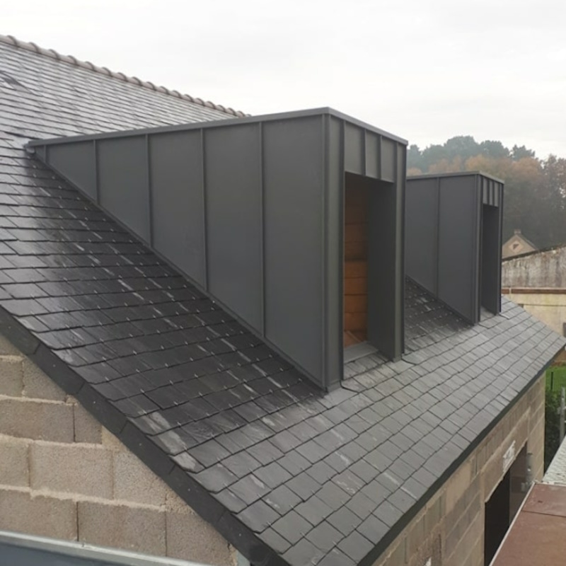 Nous utilisons ce matériau pour des couvertures complètes mais aussi pour des habillages de lucarnes ou des gouttières. Le zinc patine avec le temps, prenant une teinte mate qui s’intègre au paysage urbain. Ces réalisations témoignent de notre volonté d’allier esthétique contemporaine et durabilité traditionnelle.