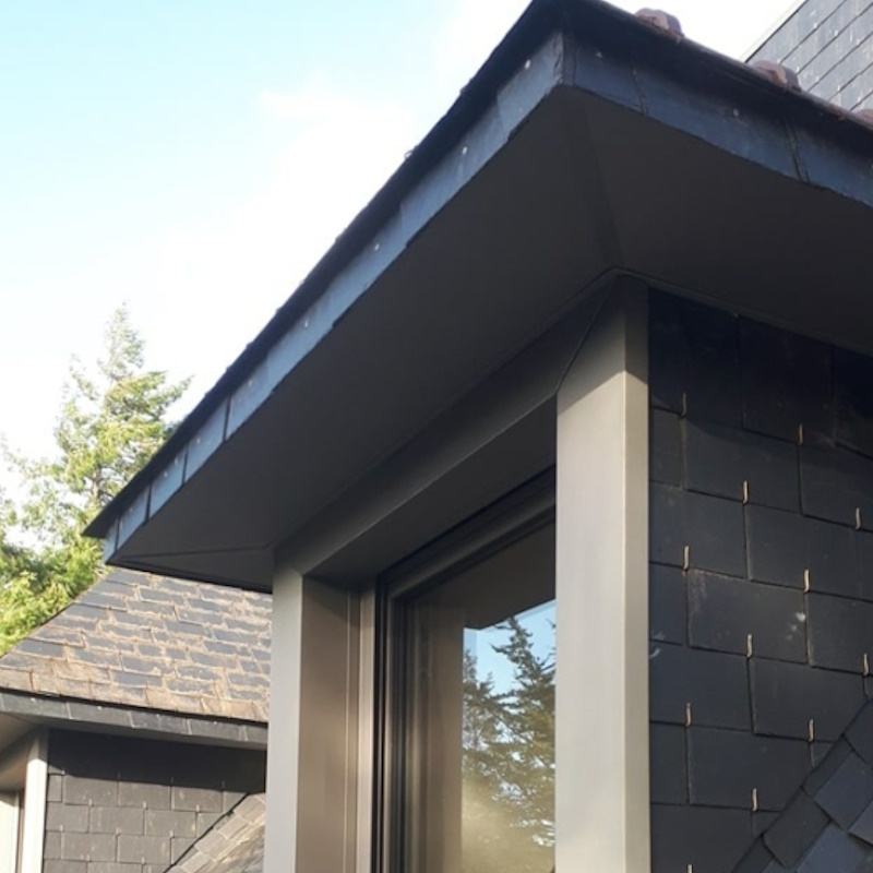 Matériau noble et malléable, le zinc permet des audaces architecturales tout en offrant une résistance exceptionnelle. Il occupe une place grandissante dans nos interventions.