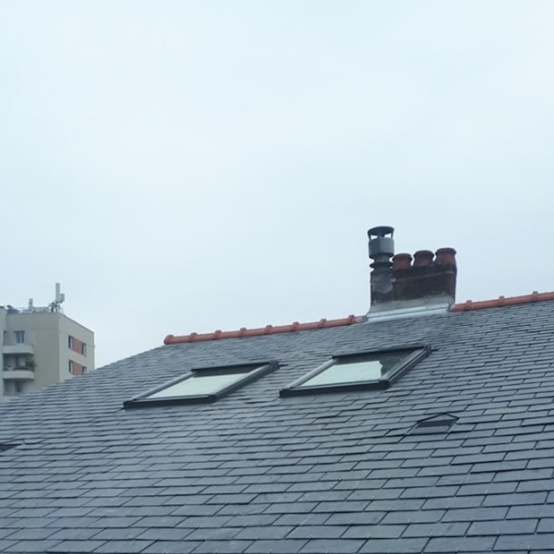 Remplacer une toiture en ardoise demande de la patience. Nos couvreurs taillent souvent les ardoises sur place pour épouser les formes complexes des toits nantais. Ce travail manuel assure une étanchéité durable face aux intempéries de l’Ouest. Vous remarquerez sur ces images la régularité du pureau et la finesse des finitions autour des cheminées, des points cruciaux pour la santé de votre maison.