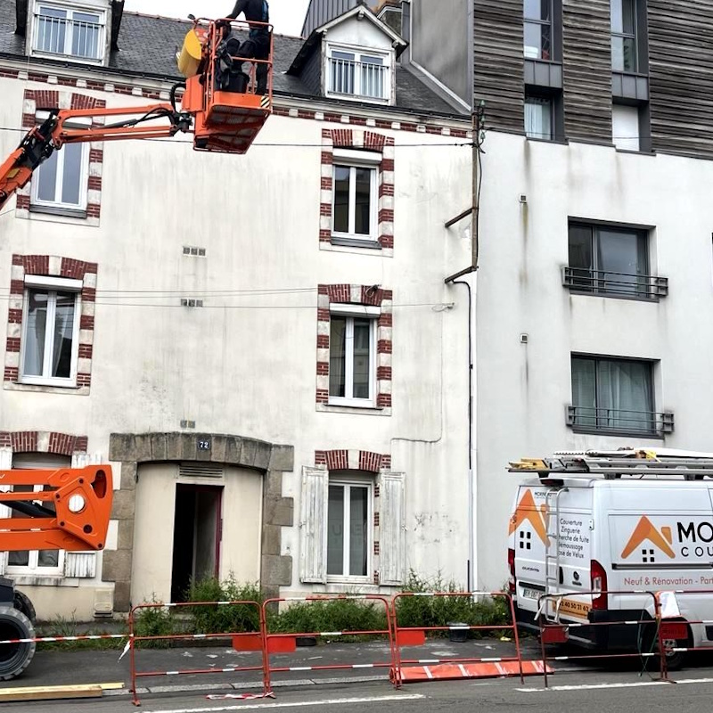 Fuite soudaine, infiltration après une tempête, tuiles déplacées par le vent… en cas de dépannage de toiture en urgence, chaque minute compte. Morineau Couverture intervient rapidement à Nantes et dans son agglomération pour sécuriser votre habitat. Dès l’appel, nous évaluons la situation et mobilisons une équipe équipée pour une mise hors d’eau efficace. Notre protocole inclut le bâchage d’urgence, la sécurisation du site et un premier diagnostic visuel ou par drone. Ce temps gagné vous permet d’éviter une aggravation des dommages sur la charpente ou l’intérieur du logement. Nous intervenons avec méthode, professionnalisme et un vrai sens des priorités. Nos couvreurs expérimentés garantissent une intervention rapide, sécurisée, et toujours couverte par notre garantie décennale.