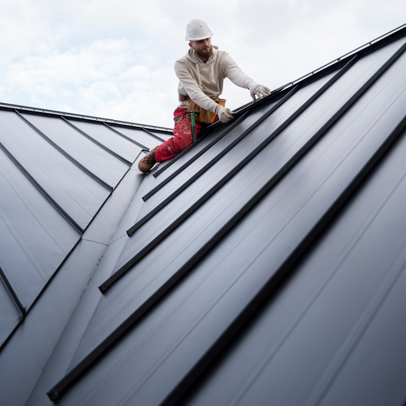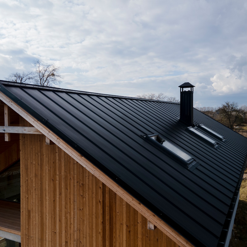 Pour des projets contemporains ou des extensions, le zinc s’utilise en couverture totale. La technique du joint debout permet de couvrir de grandes surfaces avec une faible pente tout en offrant un rendu visuel très graphique. Les lignes verticales rythment la toiture et les agrafures garantissent l’étanchéité sans fixation apparente traversante. Pour d’autres besoins, notamment sur des bâtiments annexes ou industriels, nous proposons aussi la pose de bac acier, une solution robuste et économique qui bénéficie de notre rigueur en matière d’étanchéité.
